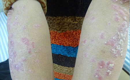 2。银屑病的最初症状通常比寻常型银屑病更为常见,通常分布对称,主要分布在四肢,其次是躯干和头部。银屑病的最初症状主要表现为皮疹、鳞片、薄膜和斑点出血。